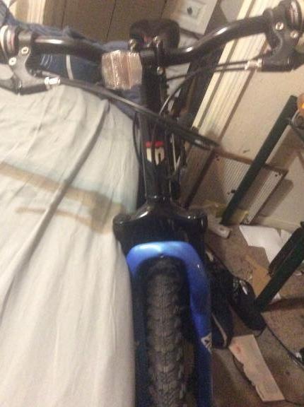 I bought this bike brand new but could not enjoy due to a couple of hip replacements, However you can be the owner of this bike equipped with air pump, front disc brakes and get in shape for this summer. Mongoose Ledge 1 with shocks on forks and mid frame aluminum.