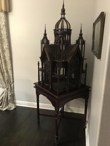 I believe it is a one of a kind Custom wooden bird cage with a a lot of detailed workman ship involved.keep for show or smaller birds