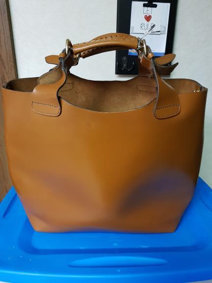 Goldish/Orange (Saddle Tan) Zara Large Buffalo Leather Double Braided Handle Tote