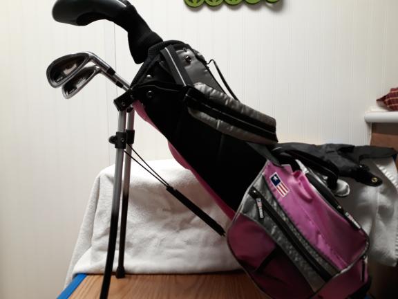 US Kids' Golf set. Three clubs (ultralight driver, 7 iron and pitching wedge) and bag.