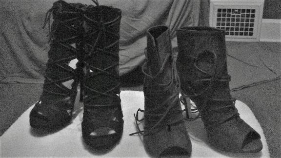 ON THE LEFT IS A BLACK TOE OUT MID-RISE DRESS SHOE ON THE RIGHT IS A MAROON TOE OUT TIE UP DRESS SHOE