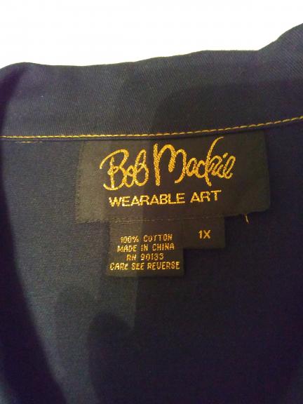 Ladies spring weight denim jacket, with "wearable art" in the form of a parrot/toucan applique on right front, made by Bob Mackie. Size 1x, but fits like a ladies large size. 100% cotton, zipper front, shirt-tail hemline with 2 front pockets. Is dry clean only!