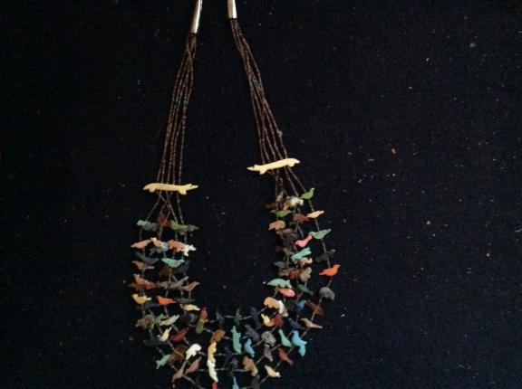 5 Strand Necklace hand curve of different animal on stone and shell necklace