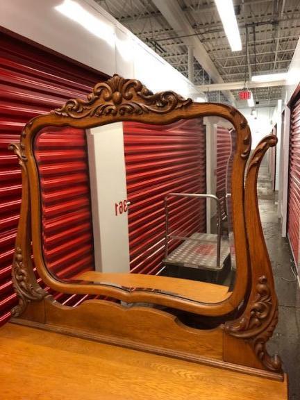 Antique Oak Dresser With Carved Mirror