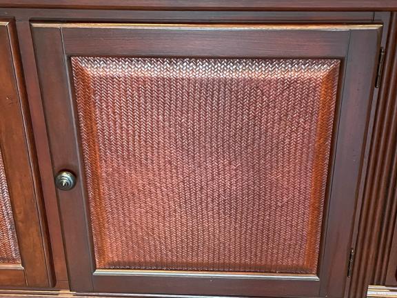 This is a large entertainment center, dark cherry wood, large screen tv opening, lights in the side cabinets with glass doors, lots of storage. For pickup only in Pawling NY.