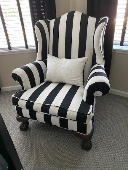 Wing back Chairs Black and White Stripe (2 available)
