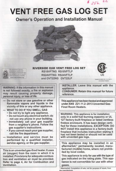 Riverside Oak Vent Free 18" Log Set
