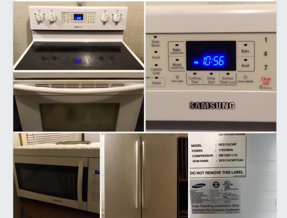 Refrigerator Electric Range with convection oven Microwave with wall mounting kit all in great condition and working order
