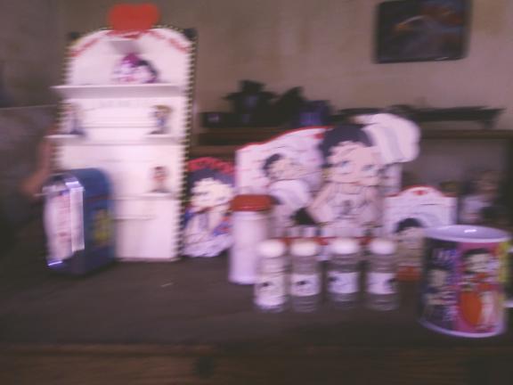 Bettyboop kitchen decor includes salt pepper shakers napkin holder with napkins 2 clocks papertowel holder very unique will have your kithen the talk of the town