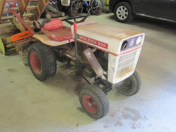 Bolens 850 Yard Tractor with 8.25 hp Wisconsin 331 cc engine, good tires, good running condition. With matching Bolens accessory equipment (listed elsewhere on this page), this tractor can be used for plowing snow, snow-blowing, mowing, tilling. With a trailer, it can haul materials ranging from soil and stone to log rounds and brush. Cash only. No delivery, local pick-up only.