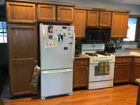 All contents of this kitchen are ready for you (except refrigerator)! Buyer must dismantle kitchen and remove from home. Not available until late April-ish. Cupboards are from Campbell Lumber. Beautiful shape!